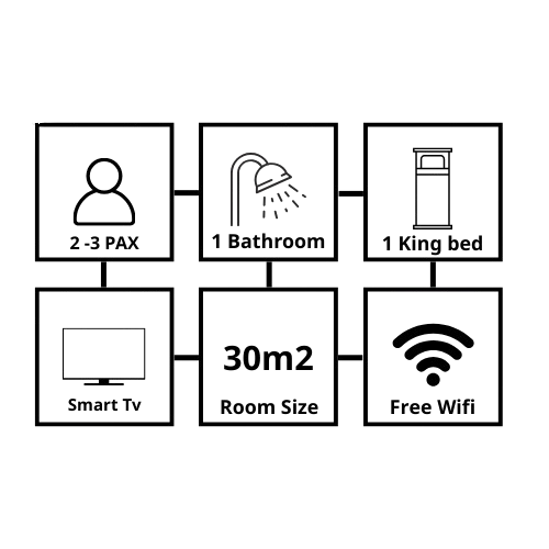 The Quadruple Room offers a spacious 35m² layout designed for comfort and togetherness. With a sunlit window overlooking the city, a full-body mirror, and a full range of modern amenities, the room brings both style and convenience to your stay. Perfect for groups of four or small families, it’s an inviting space to relax, connect, and enjoy Da Lat from a bright, cozy vantage point.