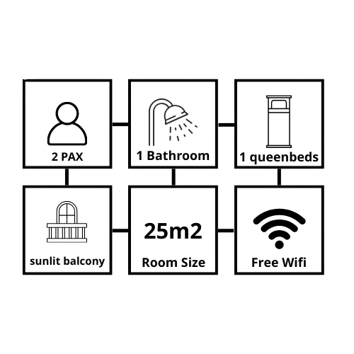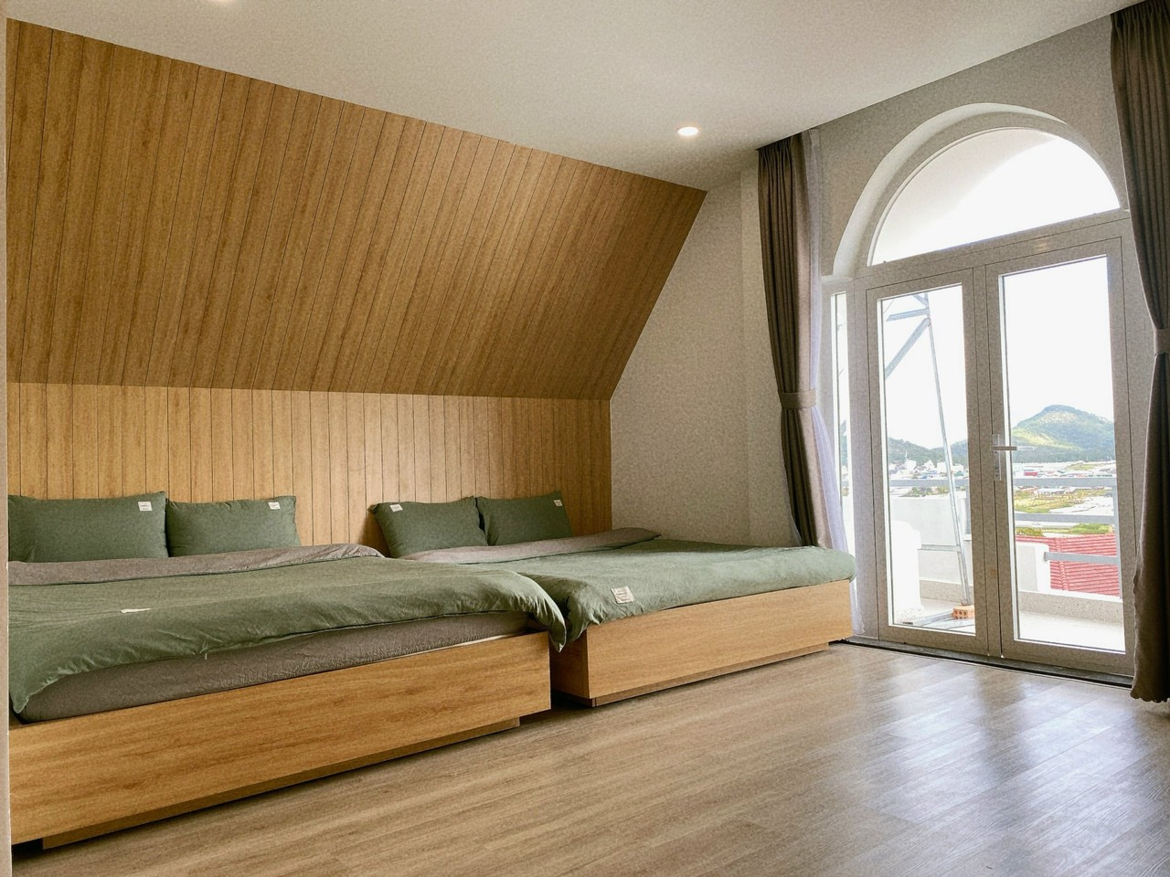 The Quadruple Balcony Room is the upgraded version of our standard Quadruple Room — redesigned for a more refined, deluxe experience. Wrapped in warm wooden finishes that add both charm and coziness, the room opens to a spacious private balcony where you can soak in Da Lat’s fresh air and city views. With generous space, full amenities, and a bright inviting atmosphere, it’s an ideal choice for groups of four or small families who want comfort with an elevated touch.